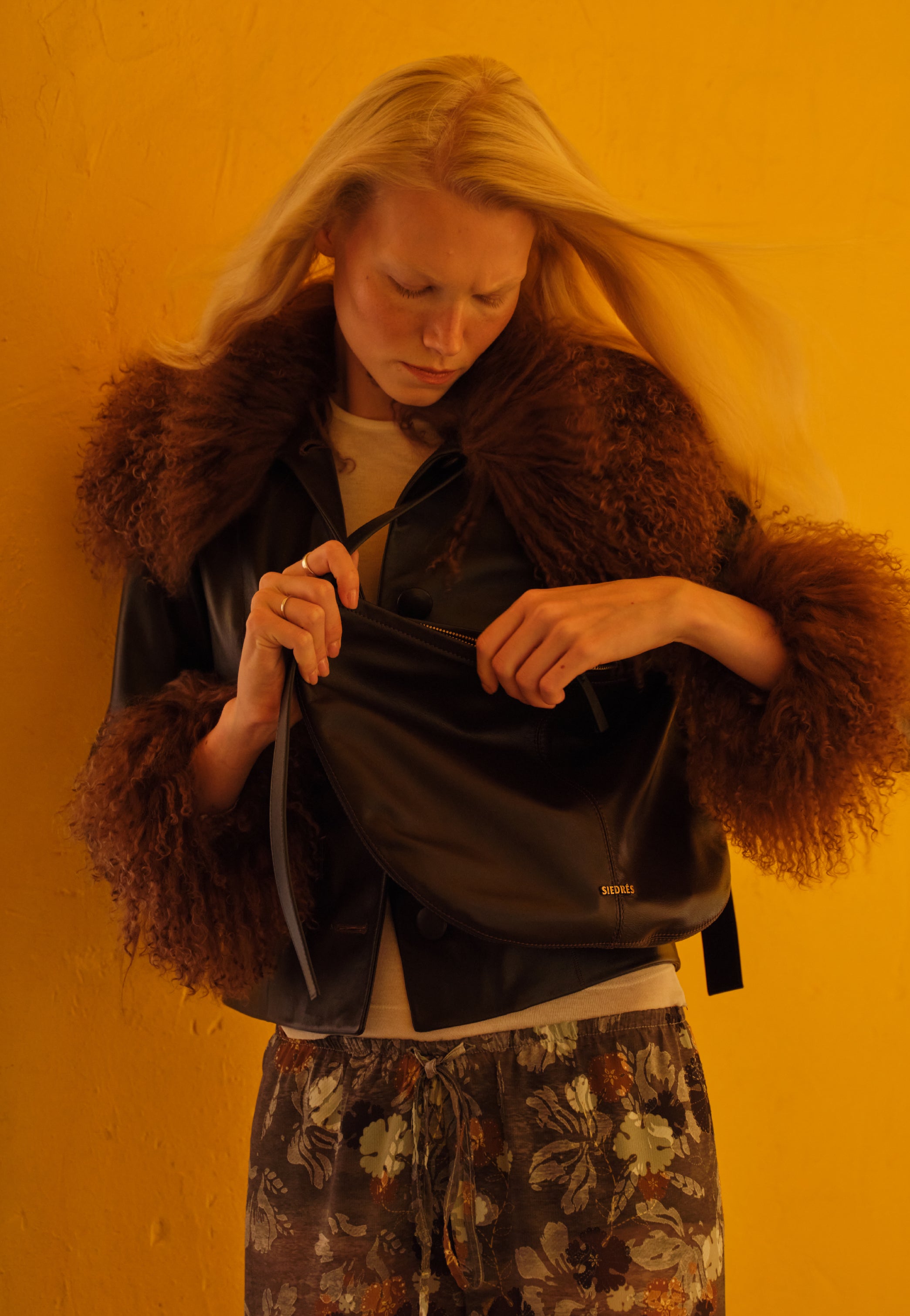 Shearling-collar leather jacket