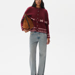 - Contrast ivory jacquard pattern at hem, sleeves and shoulders