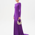 Long-sleeve jersey maxi dress with open-back detail