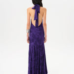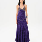 Open-back embellished satin maxi dress